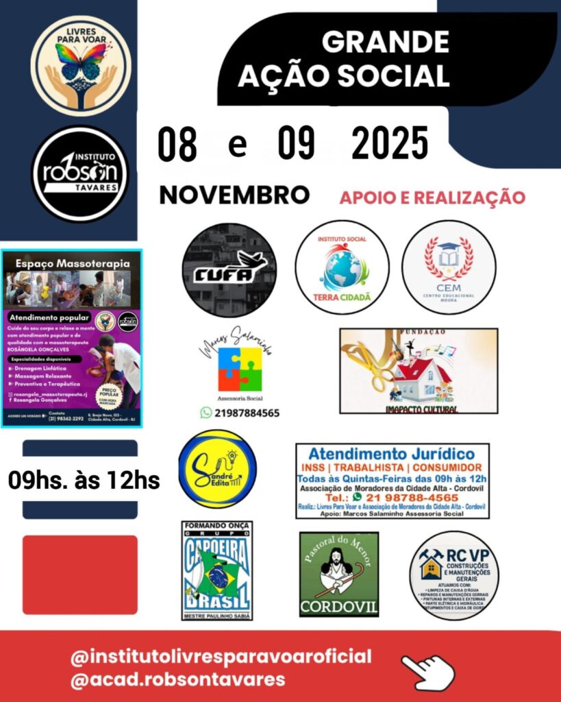 Será dois dias de atividades sociais voltados para a comunidade de Cordovil e adjacências.