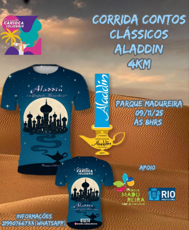 A Corrida Aladdim está de volta para mais uma edição inesquecível! Prepare-se para um dia especial no coração do Parque Madureira, reunindo corredores, caminhantes, famílias e amigos em um evento que une esporte e solidariedade.