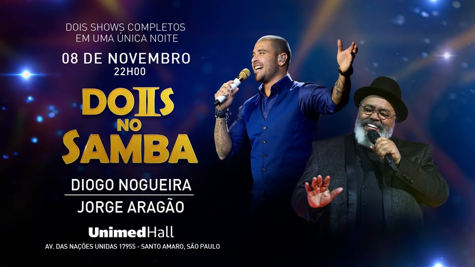 É o melhor do samba em um só lugar! Os cantores Diogo Nogueira e Jorge Aragão apresentam o show “Dois no Samba”, no Unimed Hall.