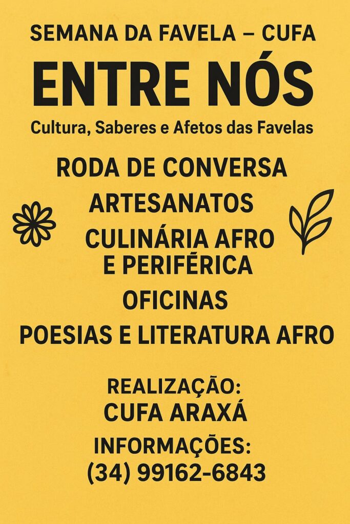 O projeto Entre Nós – Cultura, Saberes e Afetos das Favelas surge no contexto da Semana da Favela da CUFA entre os dias 04 a 10/11, como uma celebração da potência criativa e coletiva das comunidades periféricas.