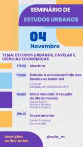 O seminário de estudos urbanos vai debater os segmentos de favelas, ciências econômicas e estudos urbanos em Natal-RN. Acontecendo no...