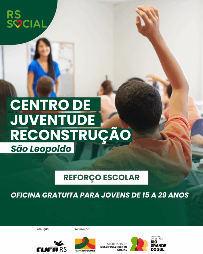 O Centro de Juventude Reconstrução de Canoas vai oferecer reforço escolar gratuito para jovens de São Leopoldo.